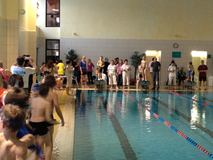 nicht allzu fernen, viel zu warmen Hallenbad tummelten